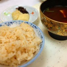 生姜ご飯。抜群な味わい。赤だしの味噌汁とよく合う。