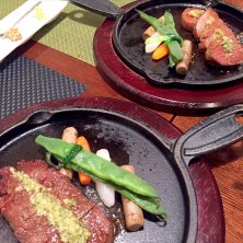 昨晩のディナー *飛騨牛フィレステーキ *飛騨牛ロースステーキ 他前菜4品 仔羊ステーキ デザート