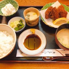 古町7商店街の年末ガラポンで500円券が当たったので、7番町ランチで一番老舗の力弥さんに飛び込みました〜! 最近食べてないカキフライ定食で! からしが付いてきたの初めてかも。結構合うな〜😄