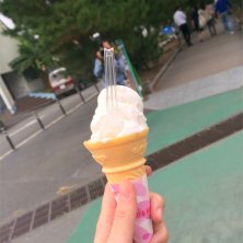 社員旅行にて☆彡 三保の松原deしらすソフトクリーム♪(´ε` ) しらすがそのまま入ってる。。 私がシラスなら丼とかに変身して役目を終えたいな。。 笑