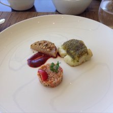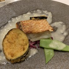 今日のランチその2 こちらは選んだメインの魚。 今日は真鯛のポワレ しっとりしていて美味しい〜♡ 大根ステーキのソースがディルと酸っぱいソースなんだけど、これ何〜?気になる♡メッチャ好きな味♪♪ 下側の円形のはクスクス♡これも優しい味で美味しい‼︎ トータルして全て美味しい(๑•̀ㅂ•́)و✧ お肉は豚肉だったけど、美味しかったみたい ☻
