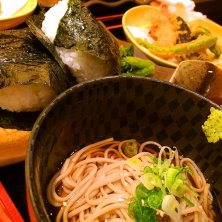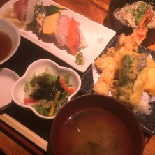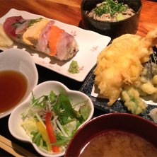 越後料理のお店でランチ♪ 魚猿ランチ お蕎麦は追加しました! つながったお寿司が面白い(≧∇≦)