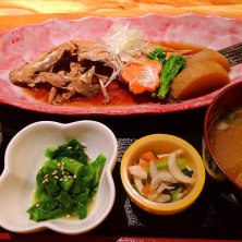【カワハギの煮付け定食】 ランチで魚が食べられる店発見。ご飯がツヤツヤピカピカで美味しゅうございました^_−☆