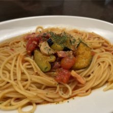 久しぶり外ランチ。 完熟トマトとツナの冷製パスタ。 やっぱりこの時期は、冷製がサッパリ美味しい♪