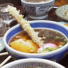 ☆小次郎うどん 長尺竿刀に見立てた長~いゴボウ天に牛の含め煮、厚焼き玉子とかまぼこ。 こちらも具だくさん!
