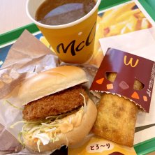 ブランチなう。今日は濃厚デミ&タルタルグラコロととろ〜りチーズのビーフシチューパイ、三角チョコパイ黒にしてしまいました!久々のマクド、人生初のグラコロでしたがまいう〜でした!!!( ´ ▽ ` )ノ