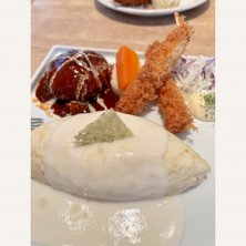 大人のお子様ランチホワイト ホワイト卵で包まれたオムライスにホワイトソースがかかってました。