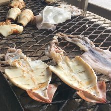 @鯵ヶ沢で焼きイカ。わさおに逢えました。