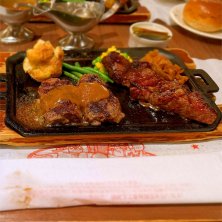 おひるはハングリータイガーのランチ。オリジナルハンバーグ220g、ライス付き1190円。スープとコーヒーを付けて。そろそろ人間ドックなので、すこし減らさなくちゃですが(笑)、美味しく頂きました♫