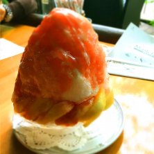 旧軽井沢、緑いっぱいの万平ホテルのカフェで桃かき氷を頂きました。