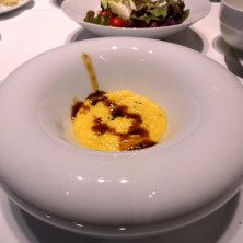 朝飯。スクランブルエッグを頼んだら何だか洒落た器で出てきた。 スクランブルエッグトリュフsource。