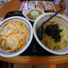 公休ランチ 赤パンチ定食、うどんセット、サラダ 時々しか来れない山田うどんなので、乗せられてついうどんセットにしてしまうのだけど、やはり炭水化物多過ぎ…