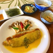 グルクンのカレーソースがけ。 待っている間に、久々の金のコイキング(Pokémon GO)もゲット。 沖縄いいな。