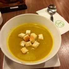 連日食べ過ぎの為、今日はサラダがメインのレストランへ…♡ パンプキンスープ♡