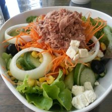 今日は、大盛りで野菜を食べる日。 山盛りのツナサラダは、食べ応え満点。チェンマイの野菜は旨い。