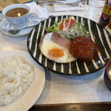 かなり遅めのお昼ごはん。 デラックスセット(しょうが焼き・ハンバーグ・コロッケ)!