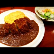 オムカツカレー、サラダ❀ ボリューム満点で食べきれなかった(*_*)