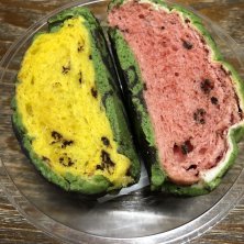 すいか🍉パン🥖 メロンパンみたいな、見た目すいかのパン‼️ ほんのり甘くて美味しかった😋 何より見た目が可愛い😍