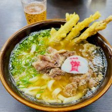ギラギラ太陽の中お墓参りを2件終了💐 うどん屋さんに入ったらピカピカの土砂降り⚡️ 間一髪セーフで肉ごぼ天うどん頂きました😃