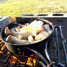 ソトご飯♪ エリンギとシーフードミックスのアヒージョ