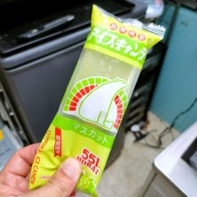 今日も会社で仕事してます・・・ (;▽;) 551アイスキャンデーが食べたくなったので買いに行きました!! (≧∇≦)b 限定のマスカットです。 限定に弱いので買ってしまいます。 (ΦωΦ)フフフ… やっぱり定番を買えば良かった・・・ _| ̄|○