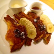 アップルレーズンフレンチトーストwithoutレーズンw りんごのコンポートと生バナナが美味しかった(〃艸〃) でも、やっぱりパンが美味しかった‼︎