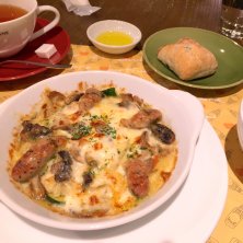 プロヴァンスセット (ソーセージとキノコのグラタン、サラダ、パン)