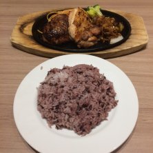 本日の昼食は奮発して「限定メニュー」😁 ハンバーグとポークソテーなんです😊