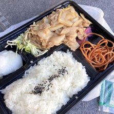 生姜焼き弁当 電話してから行ったのに「あれぇー!ごめんなんだったけ、あ!生姜!」と注文忘れてる事はよくあるけど 今回はそれに加えて なんと珍しく5-10分待たされた いろいろ重なったのだろう ここの生姜焼きは細切り生姜(ミニパックの小枝くらい)と玉ねぎ豚バラ炒め、って感じ 3分の1食べて後は夕飯行きでさぁ