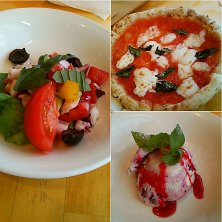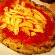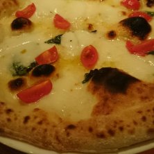 トマトソース無しのマルゲリータ。水牛モッツァレラの美味さを塩でウマく引き出してました。マリナーラやデザートピザもオススメ!