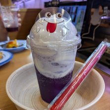 くら寿司で、娘に「自分は要らないけど見てみたいからお母さんた頼んで」と言われて頼んだ飲み物。 (娘はクリームが苦手) 綿あめみたいなの乗ってて、ストロー刺すとじゅわっと溶けてました。 甘かった〜