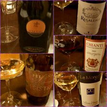乾杯はフランチャコルタ、イタリアのシャンパーニュとソムリエ永井さんの言葉どおり、引き締まりつつ まろやか。グラスの泡の出方がふわふわと優雅。一筋上がるのもいいけど、これも好き! 右上のシチリアのシャルドネとカタラットの辛口を飲んで、それより深みをと所望したら、左下のシャルドネ100%の バランス良いのを出してくれた。こちらの拙い表現を汲んで 好みを悟ってくれるソムリエさん最高だわ。サルシッチャに合わせてキャンティ。クラシコでなく。牡蠣とルッコラのペペロンチーノには、トレッビアーノ ダブルッツォ。