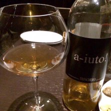 遅めの夕食に、頼るはご近所 立町つくし様!アブルッツォ州のトレッビアーノ。見たことあるエチケットと思ったら、こないだ友人たちと来た時に飲んだのに、まぁったく味は覚えていなかった。酸を感じるすっきり食中酒。もう少し甘くてフルーティなのをお願いしようかな。