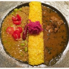 チキンカレーと枝豆のキーマカレー!吉祥寺と言えば、ピワンのカレーしか頭にありません。45分並びましたが、美味しいから気になりません。しかし、キーマにミニトマトが合う!今度真似してみよー(^o^)