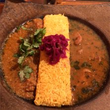 2種盛りカレー! 左が牡蠣カレー。牡蠣エキス全開でかなり気に入りました。 右がチキンカレー。少し酸味があり、さらさら。 憧れのピワンカレー。棒状のように盛られたサフランライスもいい感じにパラパラで、憧れのピワンカレーを満喫しました❤️