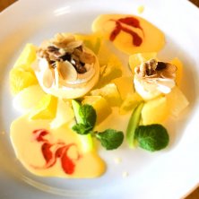 ゴッホ展 特別デザート (単品 ¥650/ドリンクセット ¥750) ひまわりに見立てたオレンジムースと柑橘系フルーツ