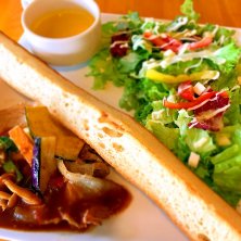 ゴッホ展 秋の恵みスペシャルランチ(¥1,280) ・ポークソテーのキノコのデミグラスソース ・エビと日高産モッツァレラチーズのサラダ(エビ抜き) ・バゲット ・かぼちゃのポタージュ ・ドリンク