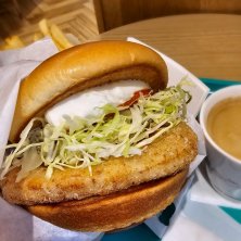 ガーリックトマトのとり竜田バーガー🍔 国産クリームチーズ♡ 今日から販売開始♪ おいしーーー(*´▽`*)