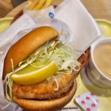 和風旨だれのとり竜田バーガー🍔 くし切りレモン添え〜♪(*´▽`*) おいしーーー♡