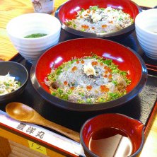 生しらす丼、しらすどーっさり800円!奥は生しらすと釜あげしらすのハーフ丼800円よぉ!!