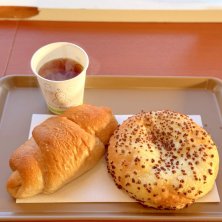 ランチは今月のおすすめ・エビタルタルパンとマロンマロンデニッシュに無料サービスのホットコーヒー😋