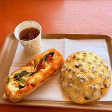 ランチはドライトマトとバジルのリュスティックとオレンジブリオッシュ😋