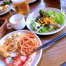 ゚。*♡ビュッフェランチ゚。*♡ 今日の名古屋は雨風強くて~クルクル巻いた髪の毛も~雨と風と湿気によって~秒殺でボッサボサになってしまった今日のランチです‼(•'╻'• ۶)۶ お腹ペッコペコ凹凹過ぎの~ビュッフェは~お皿に盛るのも~色気無しな感じ('﹏*๑)ウッ… 撮影がやっとでござぃます(汗) 今日は1日車の運転がない貴重な日なので~昼からビールいただいちゃいました(๑╹ڡ╹๑)