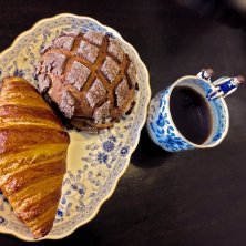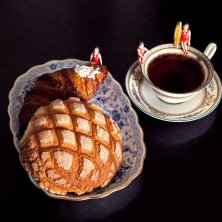 今日のお昼はアルテリアベーカリーのメロンパンとクロワッサン(^_^) フチ子さんも一緒です(^ー^)ノ