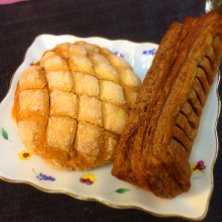 メロンパン3種類(抹茶、苺、チョコ)、食べ比べました(^_^) どれも美味しいですが、一番気に入ったのはチョコ\(^o^)/