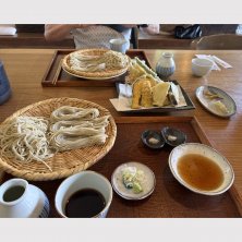 2025年8月25日 ランチ 夏野菜の天ざる蕎麦(私) ざる蕎麦(家族) 夏野菜の天ぷらをシェアして、美味しく頂きました。 戸隠神社の蕎麦屋さんはどこも混んでるけど、奥社のさらに進んだ戸隠キャンプ場の中にある手打ちそば岳は穴場❣️ 涼しいし、眺望もいいし、静かで美味しい🤤