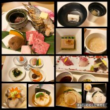 伊勢旅③ お宿の晩ご飯 前菜は4種 シャケ霙が美味しかった むかごご飯 鰯つみれ 鯛の蒸し物はも優しい味 お刺身は白身はお酒を飛ばした出汁?につけて 伊勢エビと松坂牛は別々の鉄板でバター焼き 蟹茶碗蒸し お口直しの帆立ゼリー 〆は私は鱧そぼろ茶漬け デザートは紫芋大福とフルーツゼリー お品書き、いただきましたがお喋りに夢中で写真撮るの忘れてしまった…私らしくない笑笑😆 お腹いっぱい 温泉から満月が見えて、あー幸せ💕