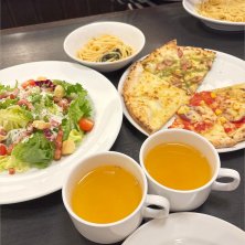 今日はワイシャツパパの誕生日祝にランチに連れて行く予定だったけど、ワイシャツパパ頭痛のため靴下ママと2人でこんにちはごはん⁺ପ( * ु°͈ᗜ°͈)ु 久しぶりの馬車道♡選べるパスタと選べるピッツァのセットを2人でシェアしたよ❣️ ナスのミートソースとマルゲリータ、照り焼きチキンのハーフアンドハーフピザにしたよ⤴️⤴️ 本当は3種のチーズだったけど店員さんが間違えて照り焼きチキンを持ってきたよww私はそっちの方が好きだったから良いけどw ドリンクバーと惣菜ビュッフェ付き☺️⚜️ 美味しかった✨