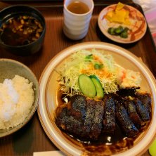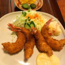 鰻屋に行ったら70人待ちで入れず。。。 急遽、とんかつ屋で海老フライ定食にしました。