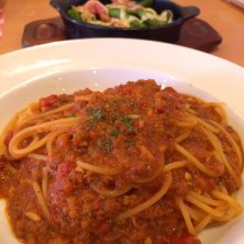 *スパゲティミートソース ひき肉たっぷりのソースで嬉しかった~♡ でもちょっと、しょっぱかったなぁ( ˙˘˙ )